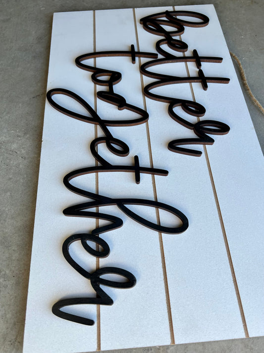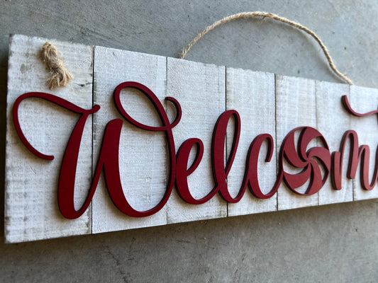 Welcome Sign Tri-Color Wood Stained with White Acrylic
