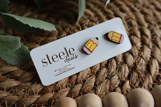 Pencil Wood Stud Earrings