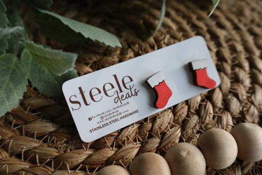 Christmas Stocking Wood Stud Earrings