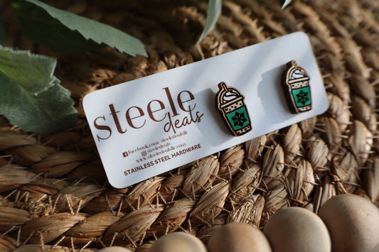 Christmas Iced Coffee Wood Stud Earrings