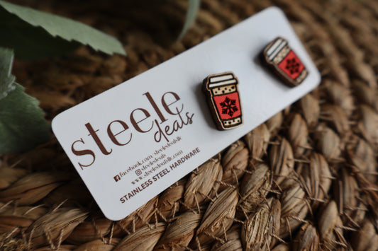 Red Christmas Iced Coffee Wood Stud Earrings