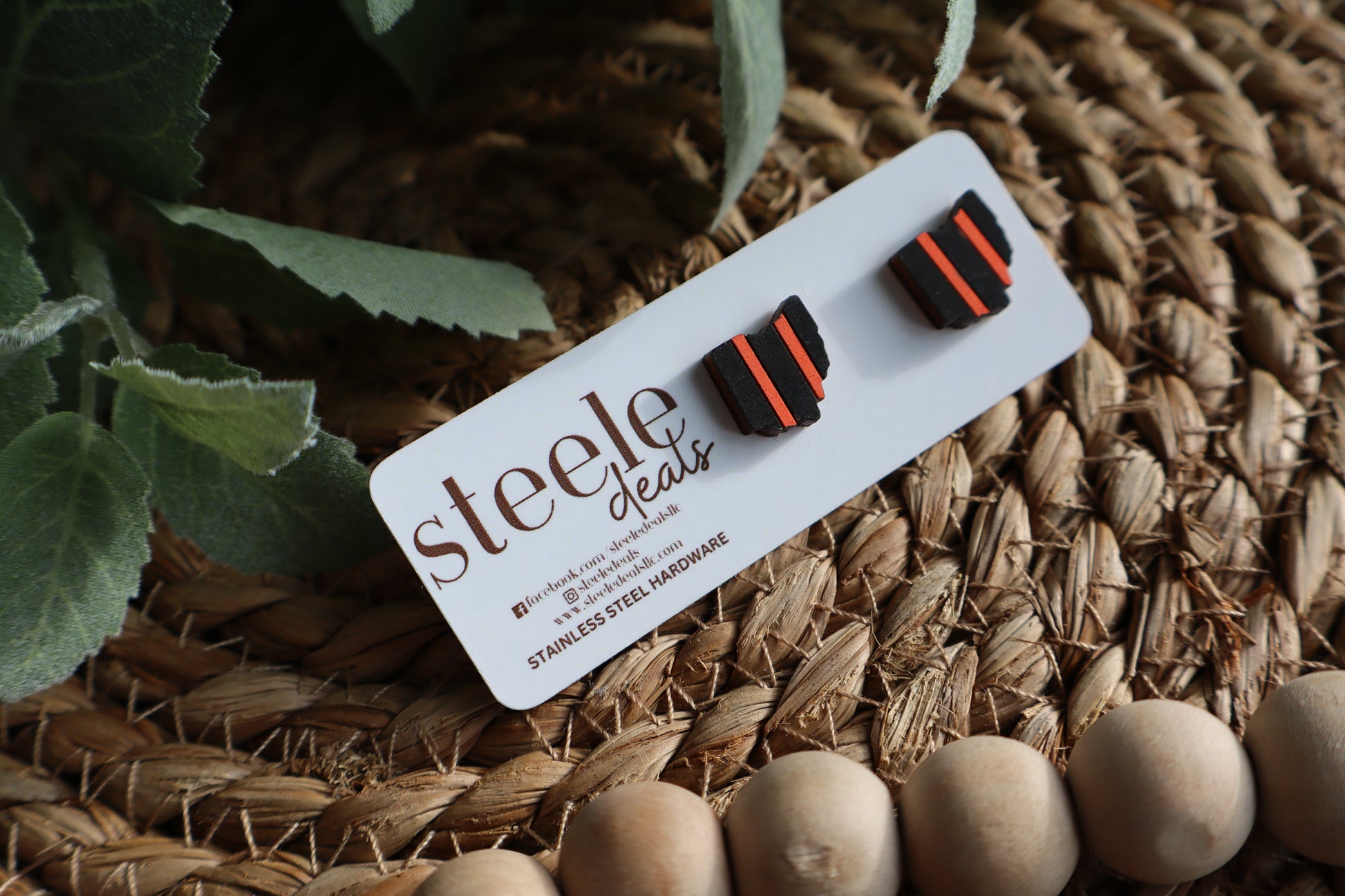 Laser cut and hand painted stud earrings. Earring hardware is stainless steel, hypoallergenic.