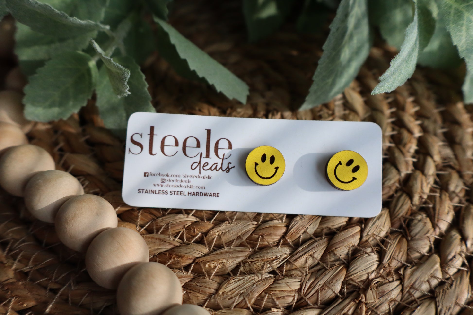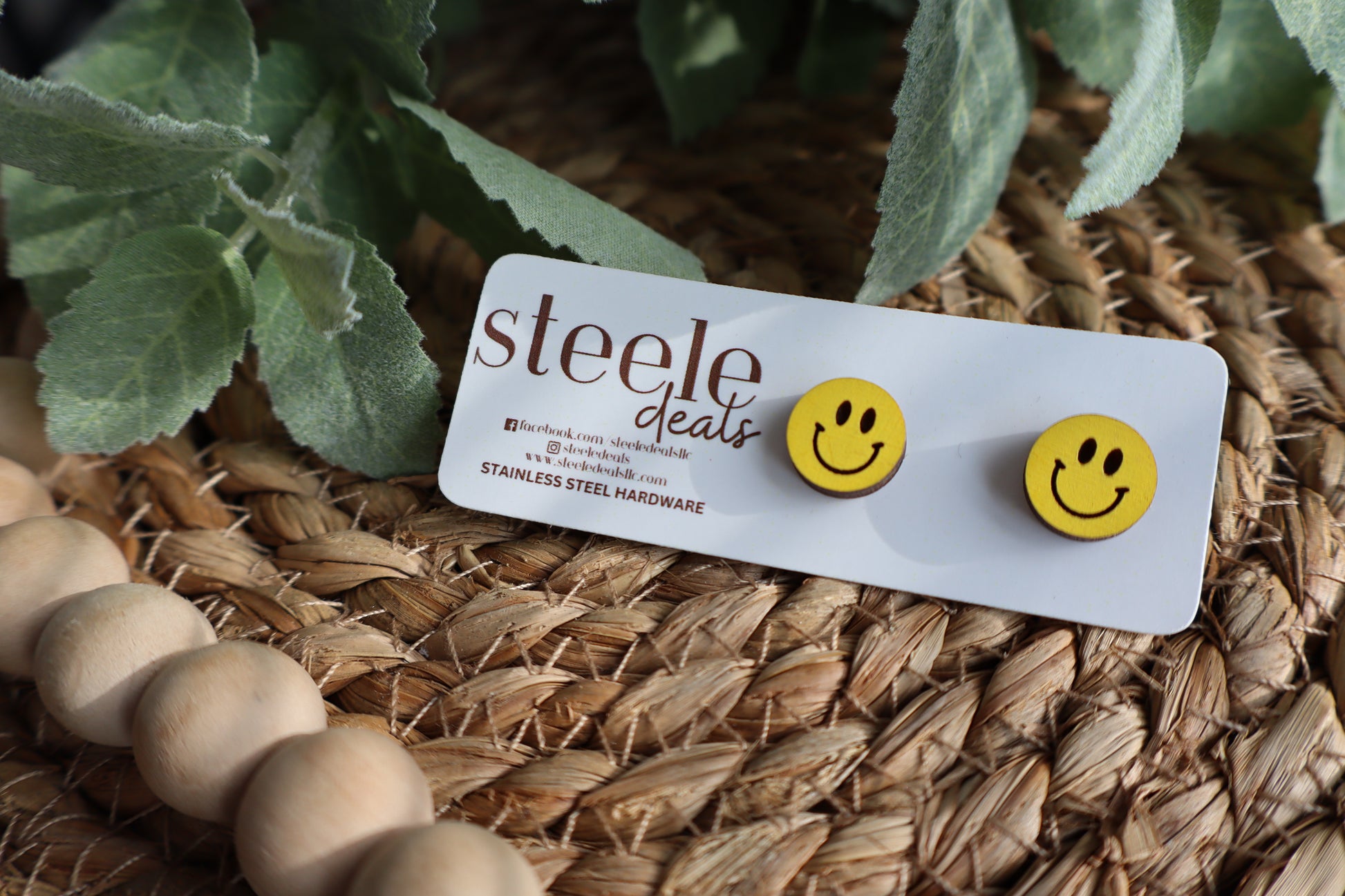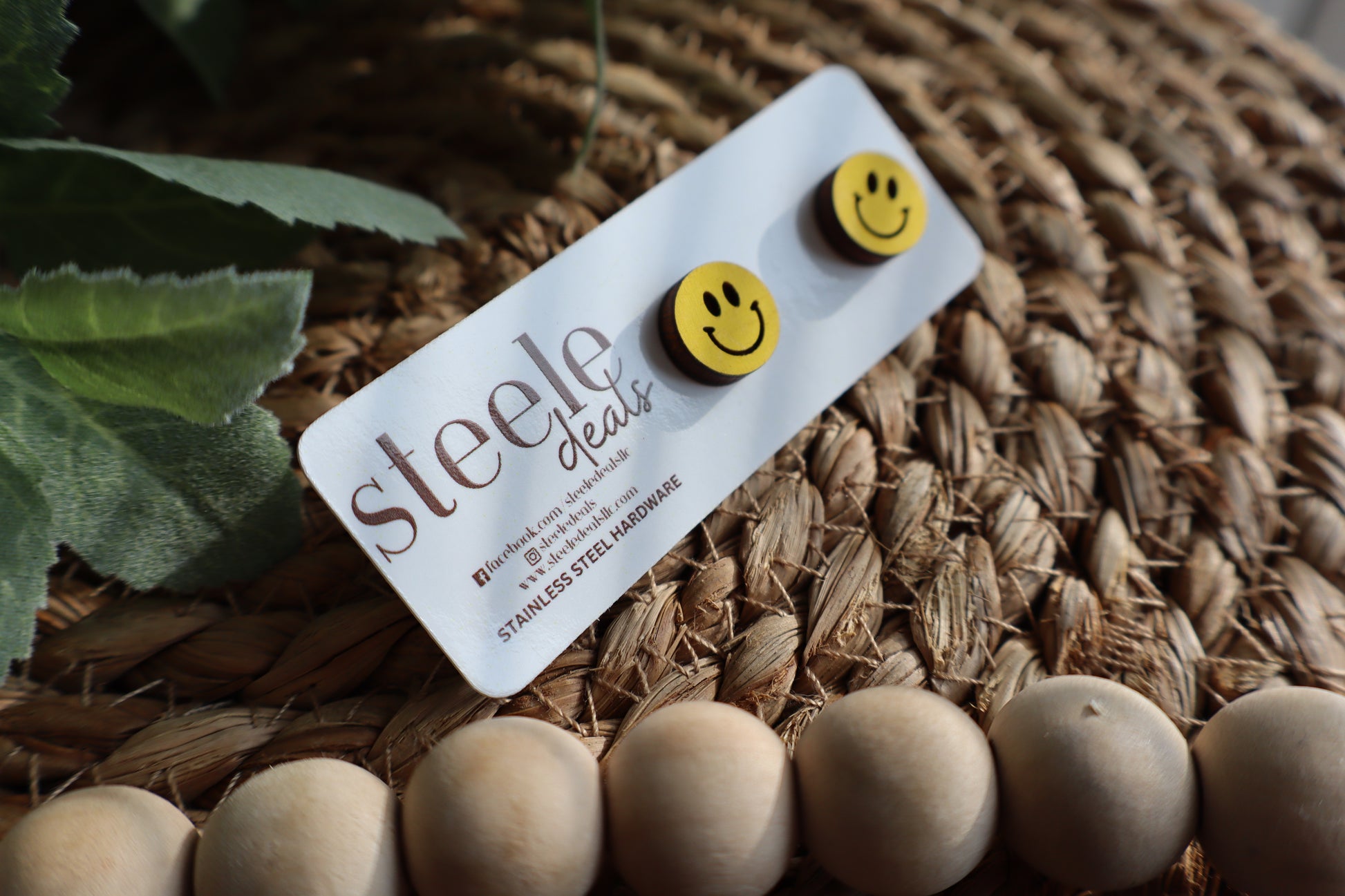 Add a touch of whimsy to any outfit with our Yellow Smiley Face Wood Stud Earrings. These unique earrings feature a charming smiley face design, bringing a pop of color and playfulness to your look. Crafted from high-quality wood, they are both lightweight and durable, making them the perfect accessory for everyday wear. Make a statement and spread joy with these delightful earrings.